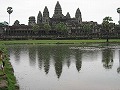 ところが、アンコールワットに着いたときには、あいにく小雨が降り出しており、寺院の中央塔の方向の空はどんよりと曇っていて、「夜明けの情景」どころで