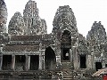 南大門を入り、高木が茂る密林を切り開いて舗装された道を5分ほど歩くと、12世紀末に建造されたバイヨンの寺院に突き当たる。アンコールワットを