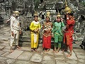 あちこちを見学していると、アプサラダンスの衣装に身をまとった男女がどこからともなく現れた。どこかの団体の観光客が記念撮影のために連れてきたらし
