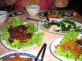 30分ほどぶらぶらとマーケットを歩いたあと、昼食のレストランへむかう。料理は、八宝菜やチンゲンサイの炒め物のような中国風のものが中心で、どれもお