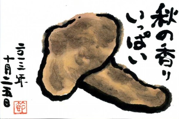 今年も松茸ご飯をいただきました 絵手紙 今年も神戸の山本さんから松茸をいただきました。 さっそく、松茸ご飯でおいしくいただきました。 とても高価なもので毎年、恐縮します。 来年からは、どうかお心遣いなく。
