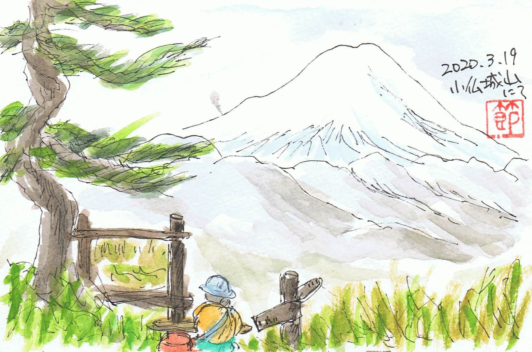 コロナは一段落か? 絵手紙 菜の花の季節です。 コロナウイルスで外出は避けるように言われてましたが、 3月の三連休の繁華街は、どこもどっと人であふれました。 実はわが家も、ここぞとばかり高尾山方面の山に出かけました。 小仏城山(こぼとけしろやま)という700メートルほどの低い山ですが、 頂上が広くて椅子やテーブルもたくさんあります。 かき氷が人気の頂上の茶屋は、残念ながら閉店してました。 しばらくすると、高尾山まで行く人がどんどん登ってきて、 ああやっぱりみんな出かけたかったんだなぁと思いました。 このままコロナが終息してくれたらと、祈るしかありません。